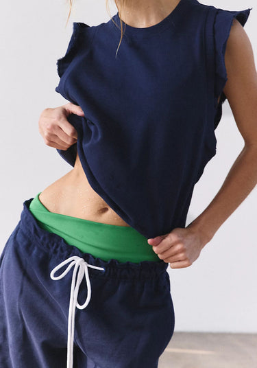 Effortlessly elevate your workout wardrobe rotation with this timeless tank featured in a relaxed, slouchy fit with flutter ruffle detailing at the sleeves for a forever femme finish.