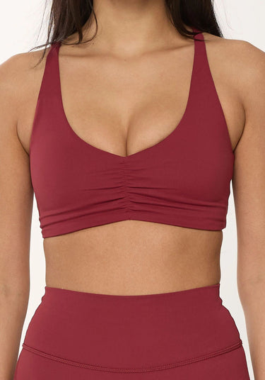 Comfort meets a feminine twist. Made from our signature butter-soft Classic Fit fabric, the Knot Bra features adjustable straps and a unique knotted back design for a girly, feminine look. With ruching at the front and removable cups the Knot Bra offers a high level of coverage and support so you can move care free through all your workouts.